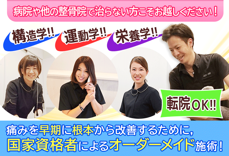 当院は、そのような幅広い身体の痛みに対応し、お身体のお悩みを根本から改善できるよう努めています。